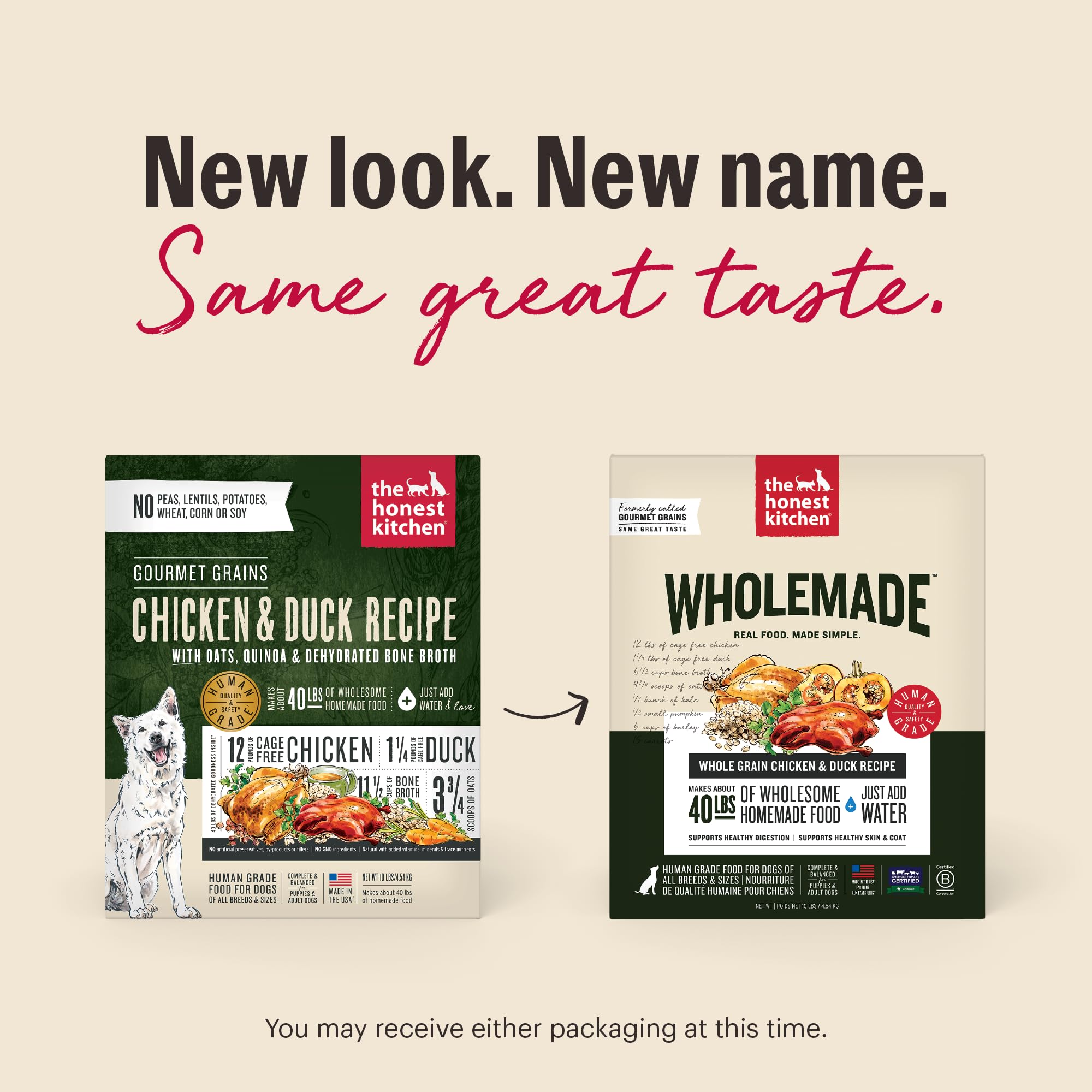 The Honest Kitchen Human Grade Wholemade™ Dehydrated Dog Food, Whole Grain Dog Food, Chicken & Duck, 10 lb (makes 40lbs)